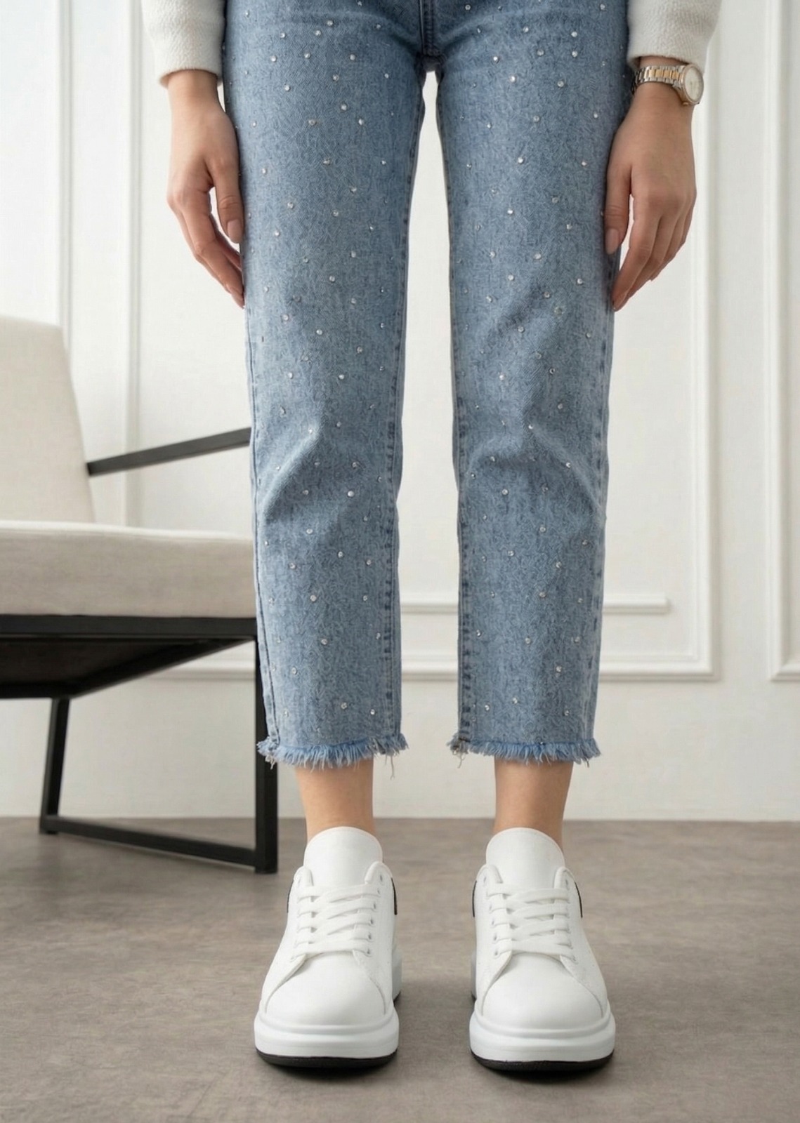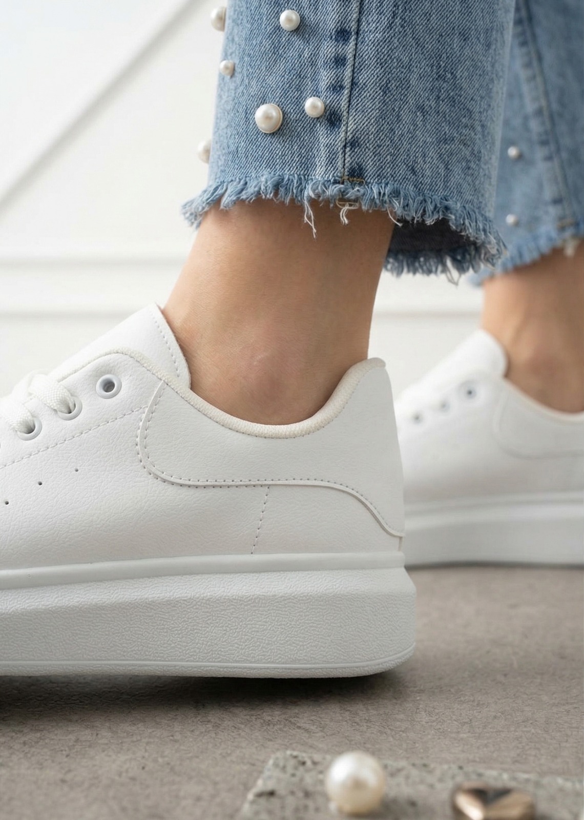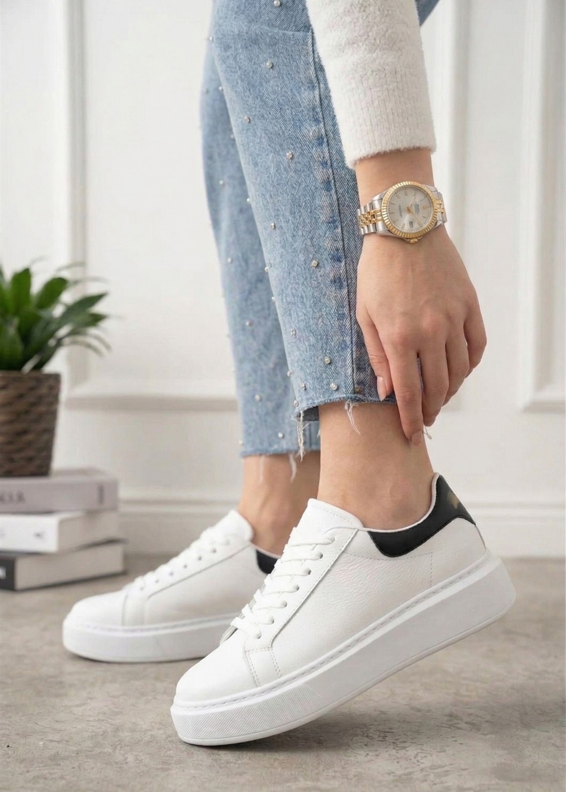 Gardırobunuzun en joker parçası olmaya aday bu beyaz spor ayakkabı, minimalist tasarımı ve modern hatlarıyla hem şıklığı hem de gün boyu sürecek konforu bir arada sunuyor. İster jean pantolonlarınızla ister elbiselerinizle kombinleyin; her adımda stilinizi konuşturun.