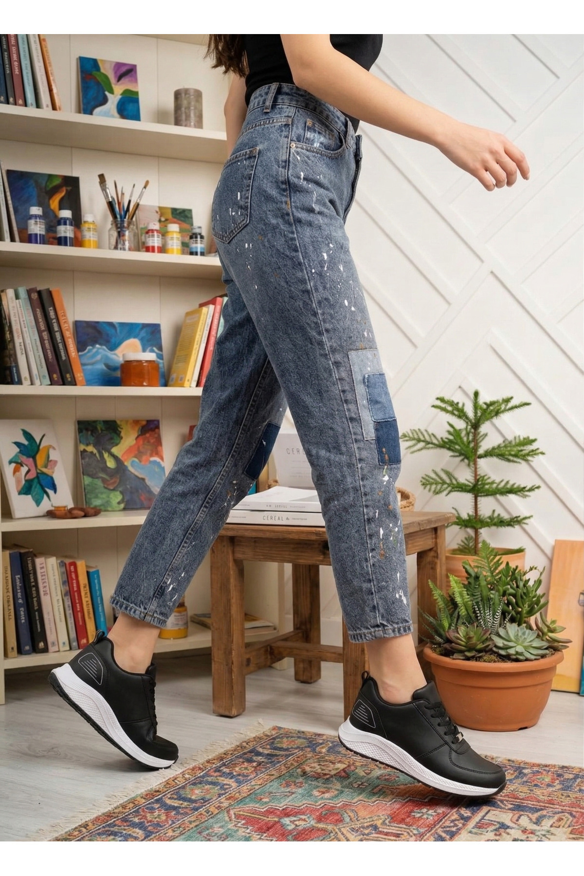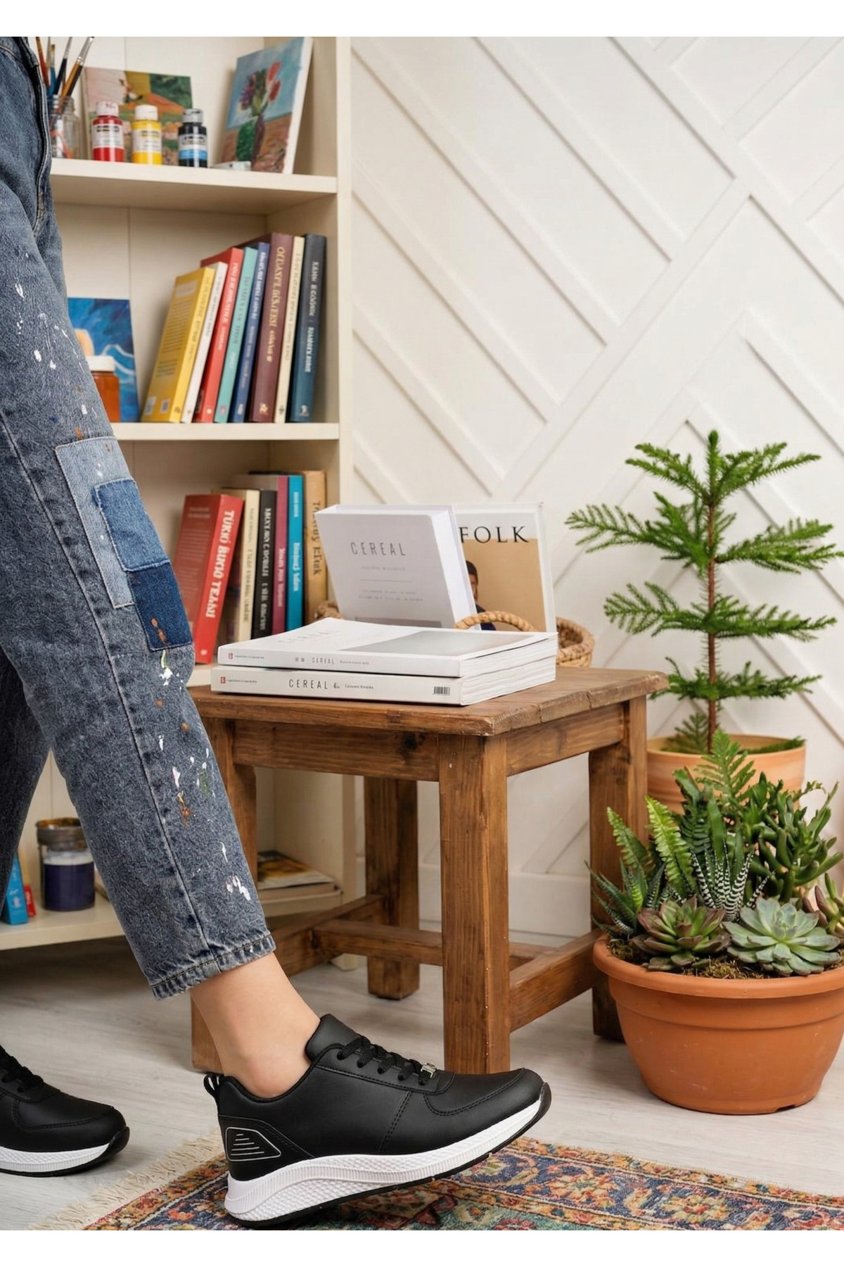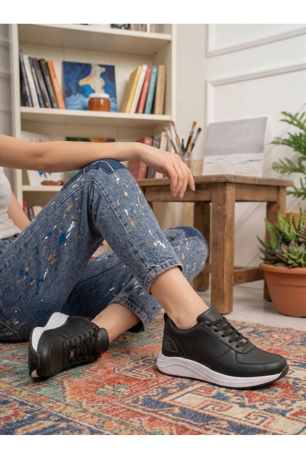 Günlük hayatın koşuşturmacasında ayaklarınıza nefes aldıracak, her kombine uyum sağlayan bu siyah cilt sneaker ile tarzınızı konuşturun. İster jean pantolonlarınızla ister eşofman takımlarınızla mükemmel uyumu yakalayın.