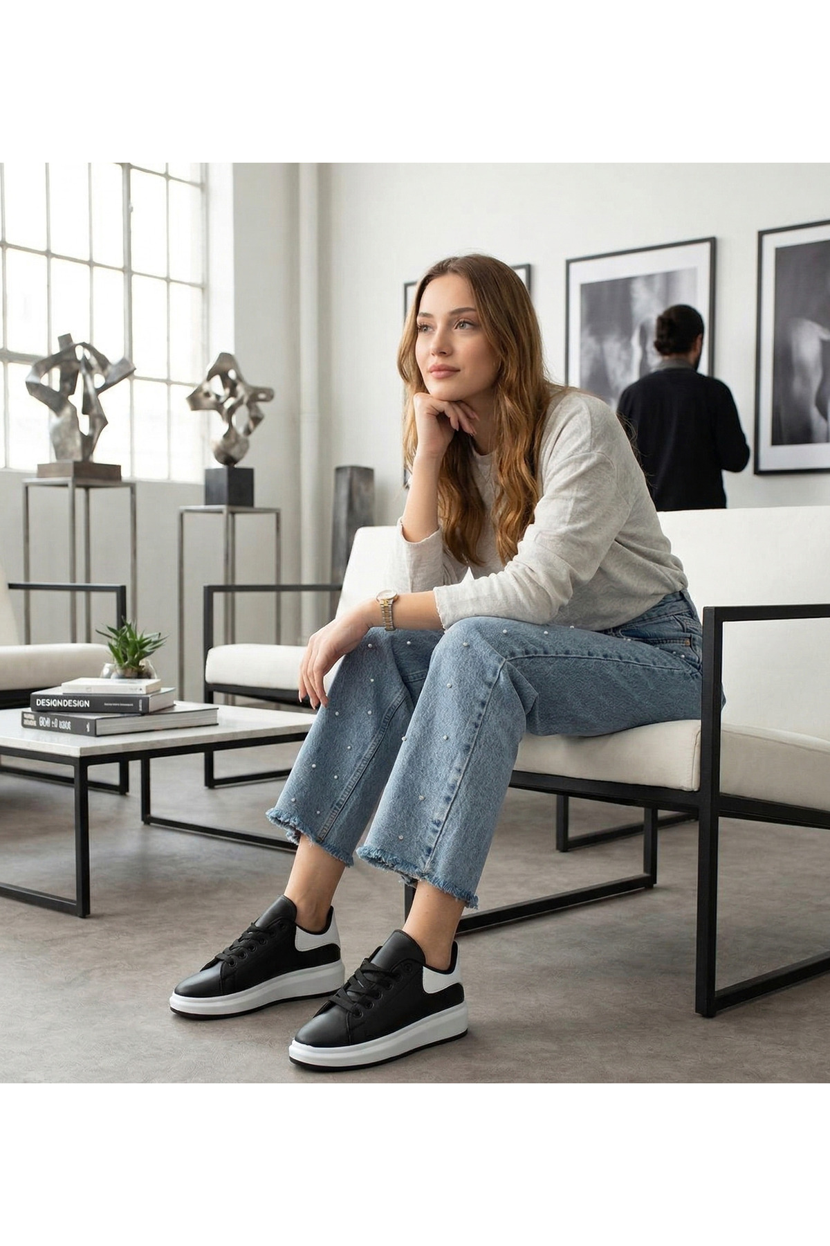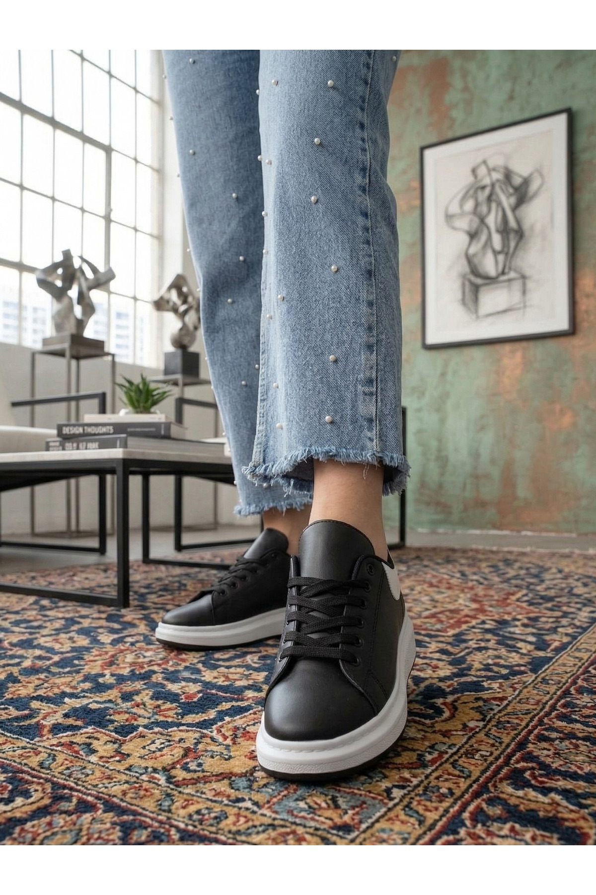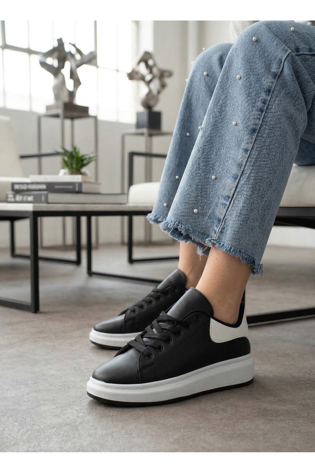 Modern şehir hayatının ritmine uyum sağlayan [Markan] Sneaker, kontrast siyah-beyaz renk bloklarıyla stilinize iddialı bir dokunuş katıyor. Kalın taban yapısı sayesinde boyunuzu daha uzun, adımlarınızı ise daha hafif hissetmenizi sağlar.